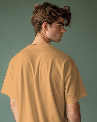 Oversized Drop Shoulder Round Neck Coffee Cotton T-Shirt with Sanskrit Typography - नैपुण्यात् विजयो ध्रुवम् (Victory is Certain Through Skill)