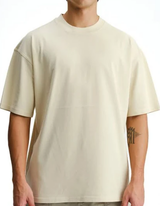Beige Oversize French Terry round-neck Cotton T-shirt