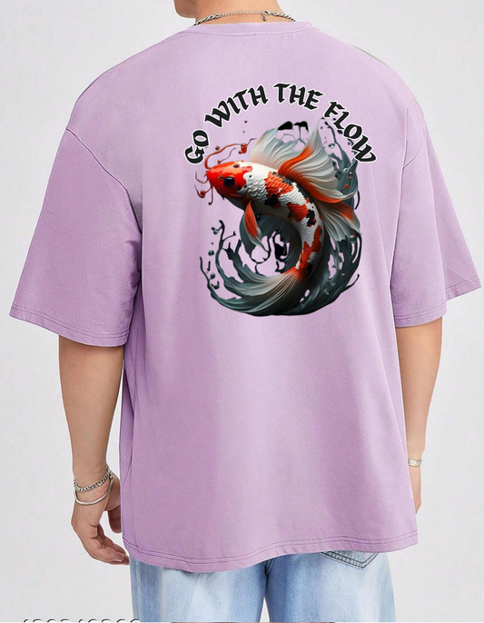 Oversized Drop Shoulder Round Neck lavender Cotton T-Shirt with Sanskrit Typography - अनुगच्छतु प्रवाह (Go with the Flow)