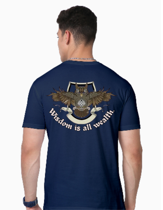 Regular Fit Round Neck Navy Cotton T-Shirt with Sanskrit Typography - विद्यैव सर्वधनम् (Knowledge is the True Wealth)