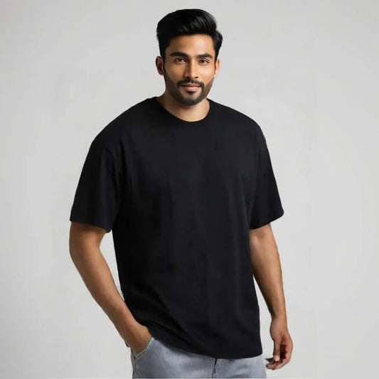 Oversized Drop Shoulder Round Neck Black Cotton T-Shirt with Sanskrit Typography - नैपुण्यात् विजयो ध्रुवम् (Victory is Certain Through Skill)