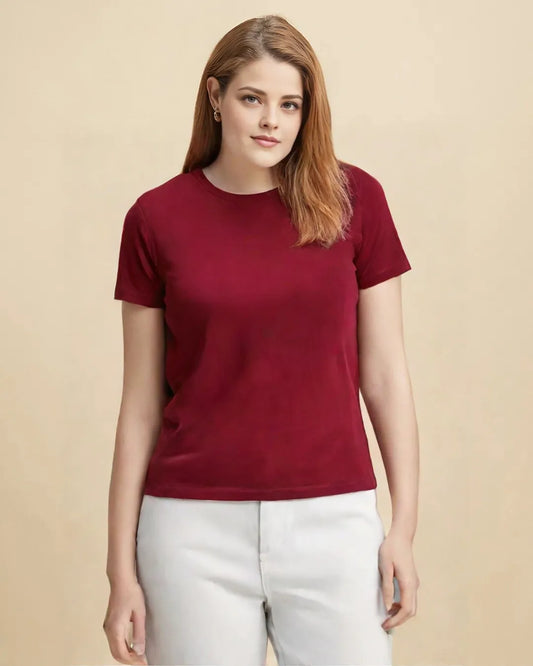 Basics Regular-Fit Maroon Round-Neck Cotton T-shirt