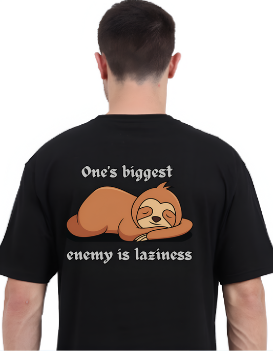 Oversized Black Vagabond Sanskrit Typography Cotton T-shirt - आलस्यं हि मनुष्याणां शरीरस्थो महान् रिपुः