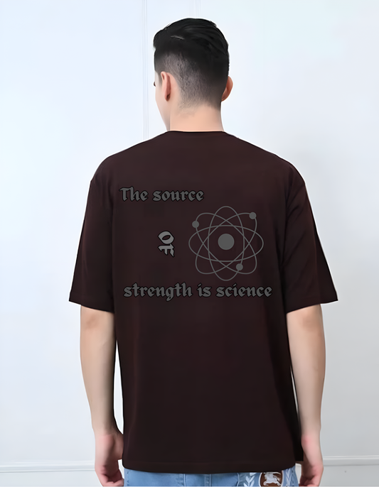 Oversized Drop Shoulder Round Neck Coffee Cotton T-Shirt with Sanskrit Typography - बालस्य मूलं विज्ञानं