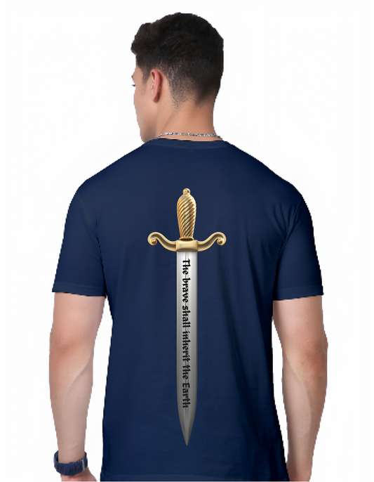 Regular Fit Round Neck Navy Blue Cotton T-Shirt with Sanskrit Typography - वीरभोग्या वसुंधरा (The Earth is for the Brave)