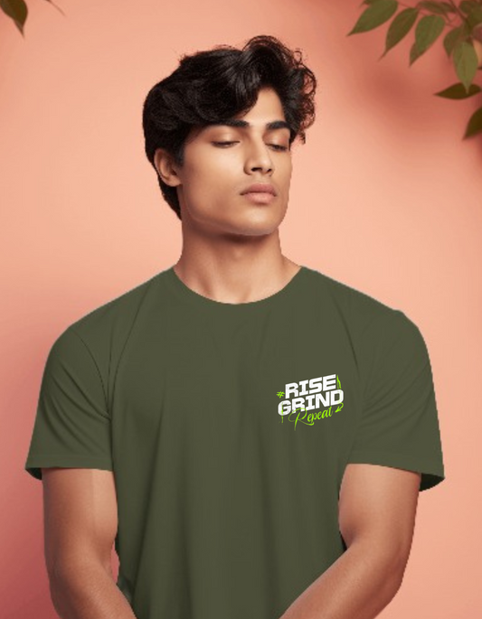 Rise Grind Repeat Olive Green Regular Fit Vagabond Us Gym T-shirt